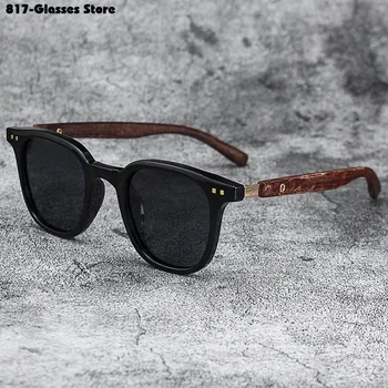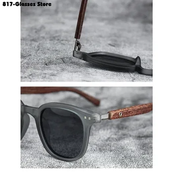 Stylish polarized sunglasses with UV protection and retro wood grain finish, perfect for cycling and street photography.